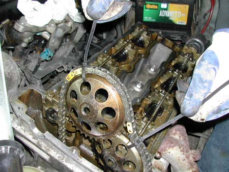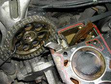 Siis täpsem töö. 1. kolb ülemisse surnud seisu, kõik märgid üle kontrollitud ja siis ketirattad lahti. Talla